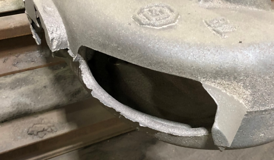 Example of a flashing removal application where only part of the surface requires grinding