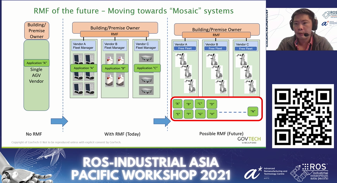 Timothy Tan, Robotics Lead & Senior Systems Engineer of GovTech also presented “Robotics Adoption & RMF”, where he presented the current Robots Middleware Framework Architecture, and how it can be further enhanced in the future for optimal deployment.